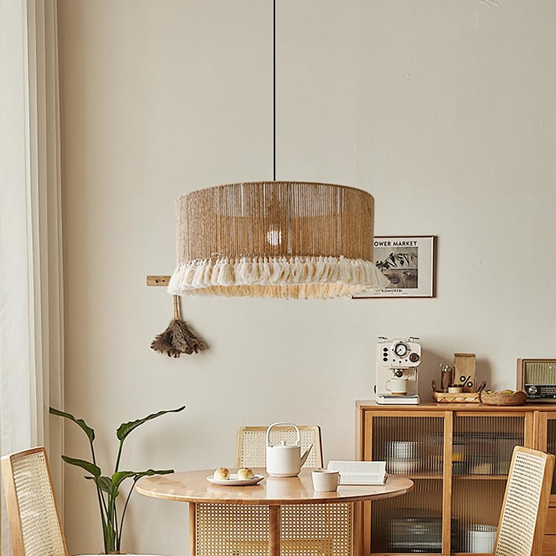 Japanese Style Dining Room Round Chandelier Hand Woven Hemp Rope Chandelier Retro Industrial Style Attic Lighting Fixture,Modern Lighting