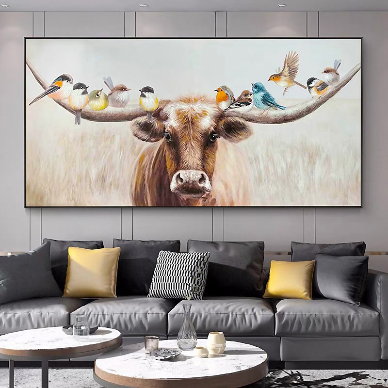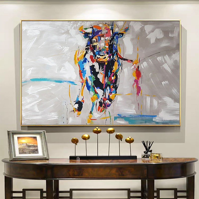 Handmade Oil Painting Canvas Wall Art Decoration Modern Abstract Animal Bull for Home Decor Rolled Frameless Unstretched Painting