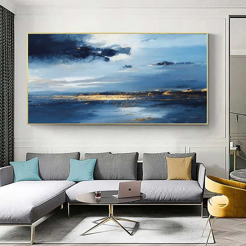 Handmade bule sky ocean gold oil paintings Hand Painted Dark Blue Painting Modern Abstract Blue Gold Ocean Sunset Landscape Wall Art Home Decoration Decor
