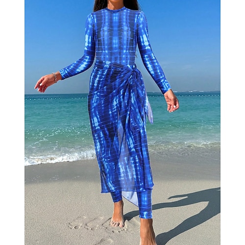 Per donna Costume da bagno Costumi da bagno 3 pezzi Stampato Ultra Leggero (UL) Protezione UV Elastico Manica Lunga Costume da Bagno Surf Snorkeling Inverno