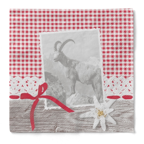 Sovie HORECA Serviette Alma aus Tissue 33 x 33 cm, 100 Stück - Edelweiß Bergziege Karos