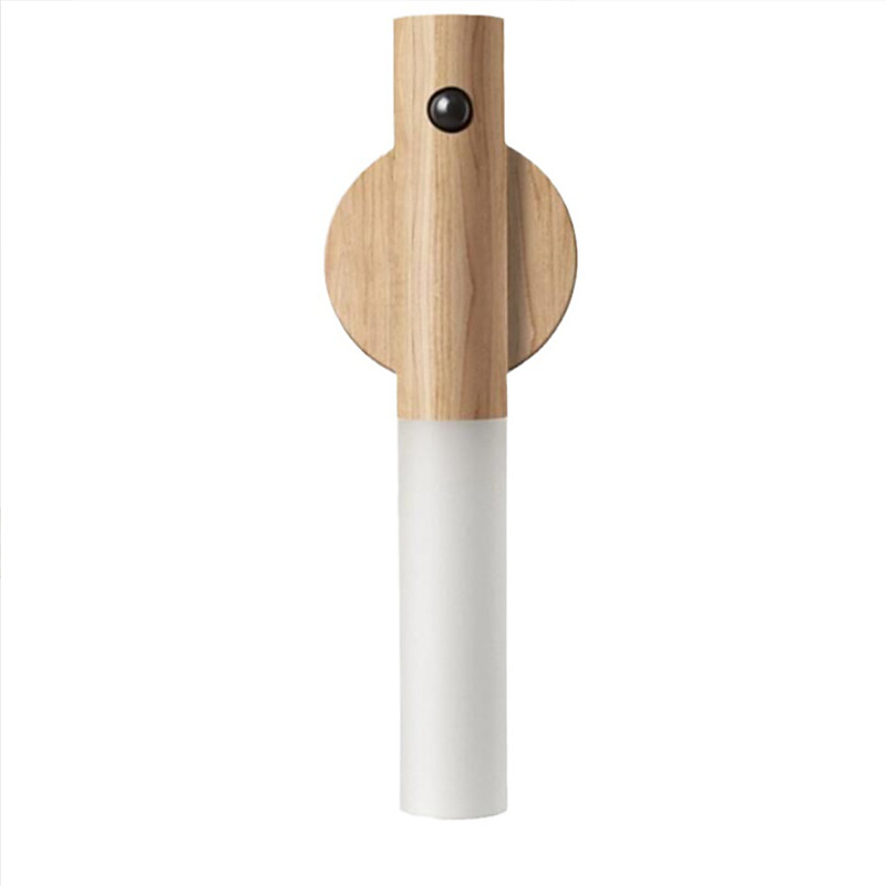 Nordic Wood Wall Lamp, 360° Rotating Dimmable Wall Sconce with Touchable Magnetic Cordless Mount for Bedroom Reading
