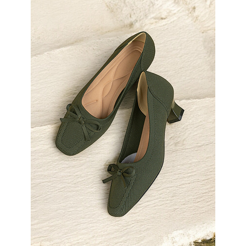 Women's Flyknit Low Heel Bowknot Pumps – Breathable Lightweight Comfort Shoes for Office, Work and Casual Wear