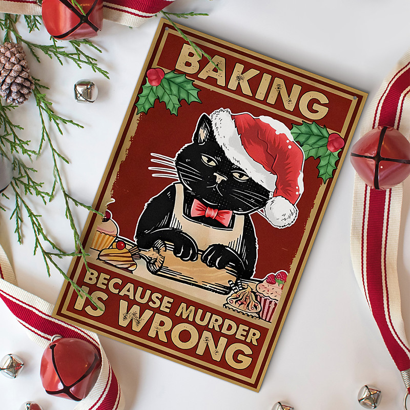 Christmas Wooden Black Cat Hanging Sign, Rectangular Xmas Cat Decoration, Colorful Printed Wooden Sign for Room, Home Décor or Holiday Christmas Decorations