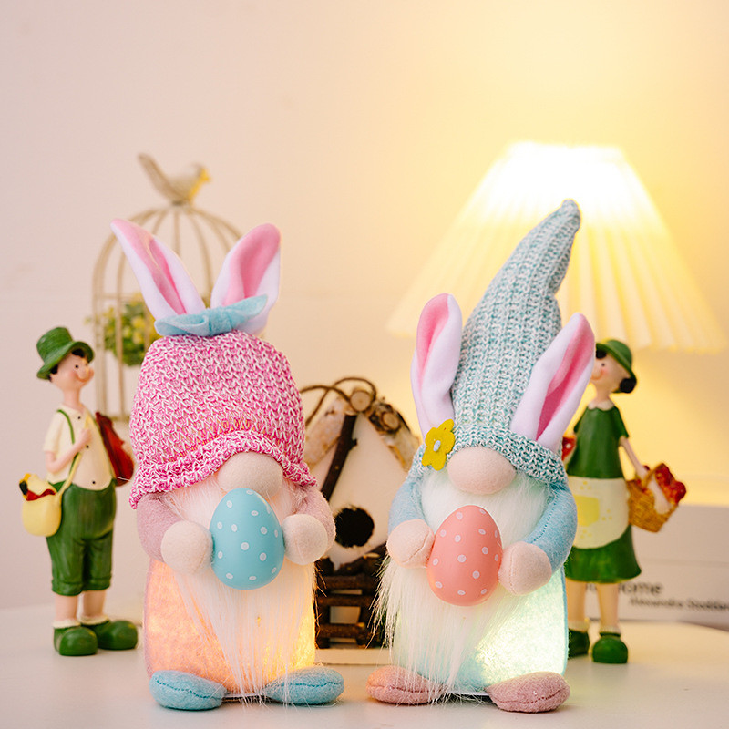 2 Pack Easter Decorations LED Lighted Faceless Gnome Dolls with Bunny Ears Holding Easter Eggs Spring Holiday Figurines for Home Decor Battery Operated (Batteries Not Included)