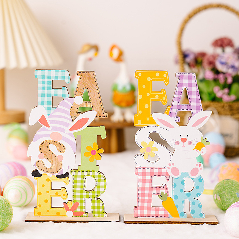 Easter Wooden Letter Ornaments, Easter Bunny Printed Wooden Figurines, Spring Holiday Decorations, Perfect for Seasonal Home Decor and Easter-Themed Displays