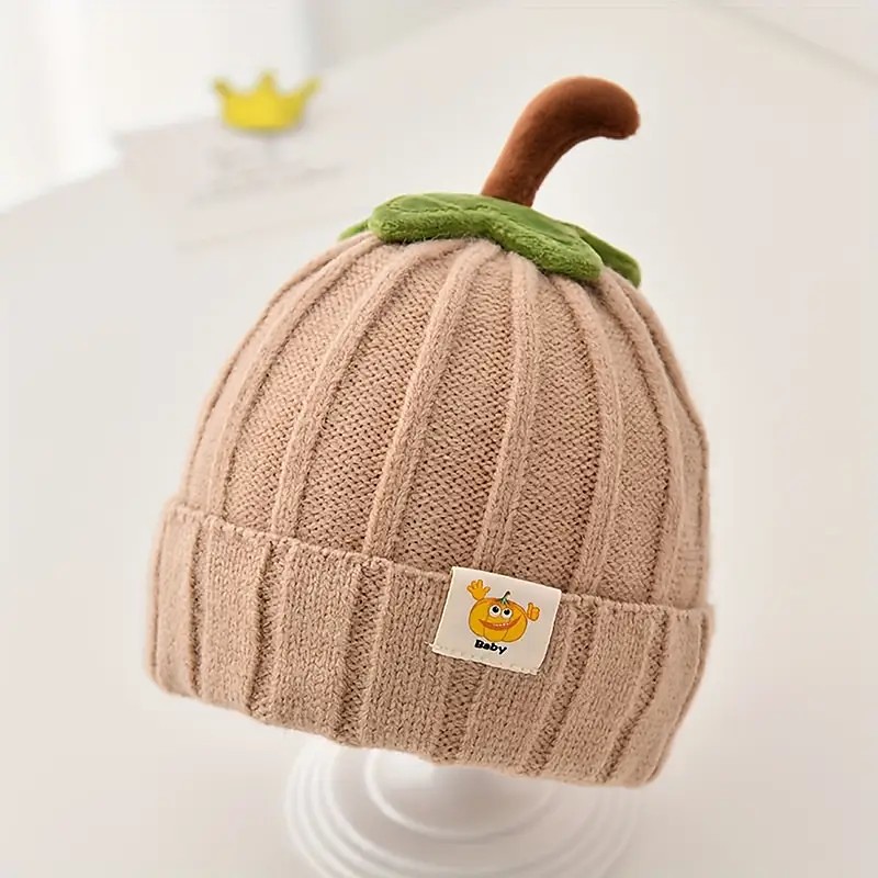 Fall Thanksgiving Kids Knit Pumpkin Hat, Winter Warm Thick Beanie with Ear Protection, Cute Baby Boys Girls Cartoon Hat for Outdoor Travel, Holiday Party, Birthday Gift