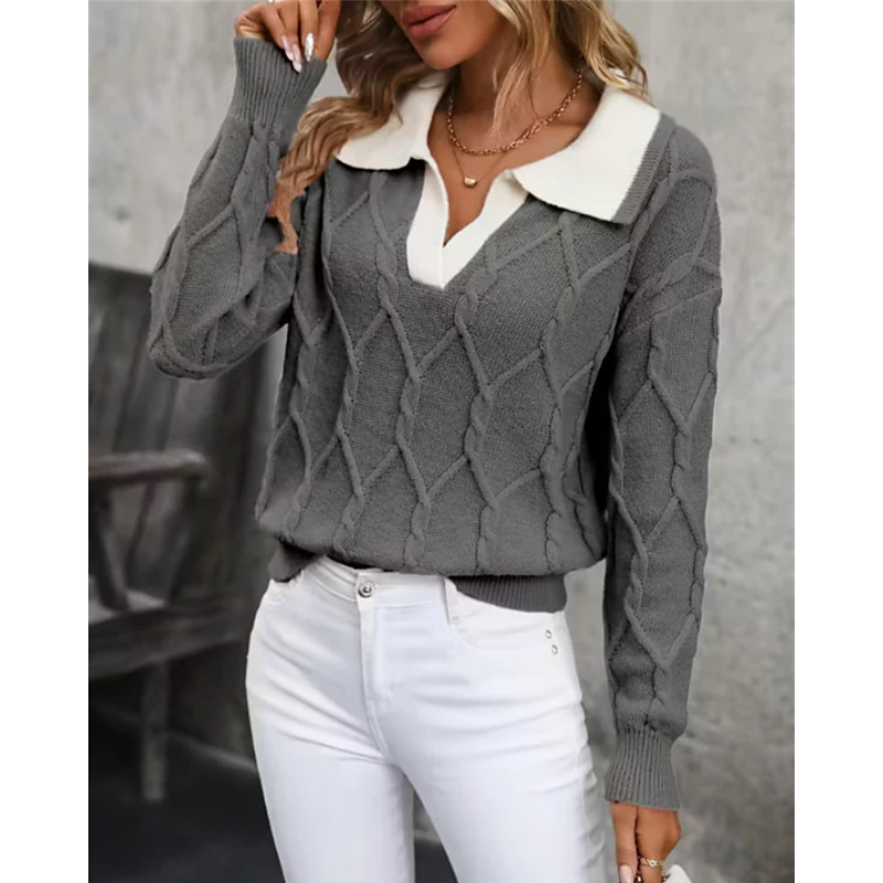 Women's Sweater Pullover Elegant Casual Pure Color Ribbed Shirt Collar Knitted Long Sleeve Regular Tops Knit Outdoor Daily Weekend Hot Pink Black Fall Winter