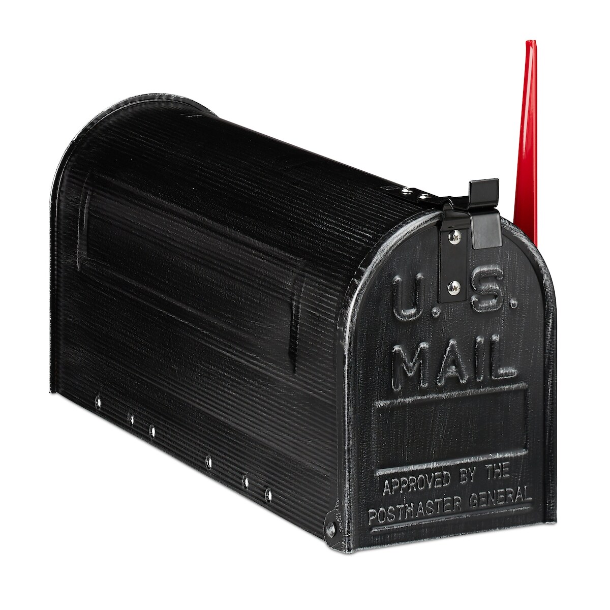 Relaxdays US Briefkasten, Vintage, US Mail, Zeitungsfach, groß, HBT: 22 x 16 x 48 cm, Fahne rot, Stahl Mailbox, schwarz