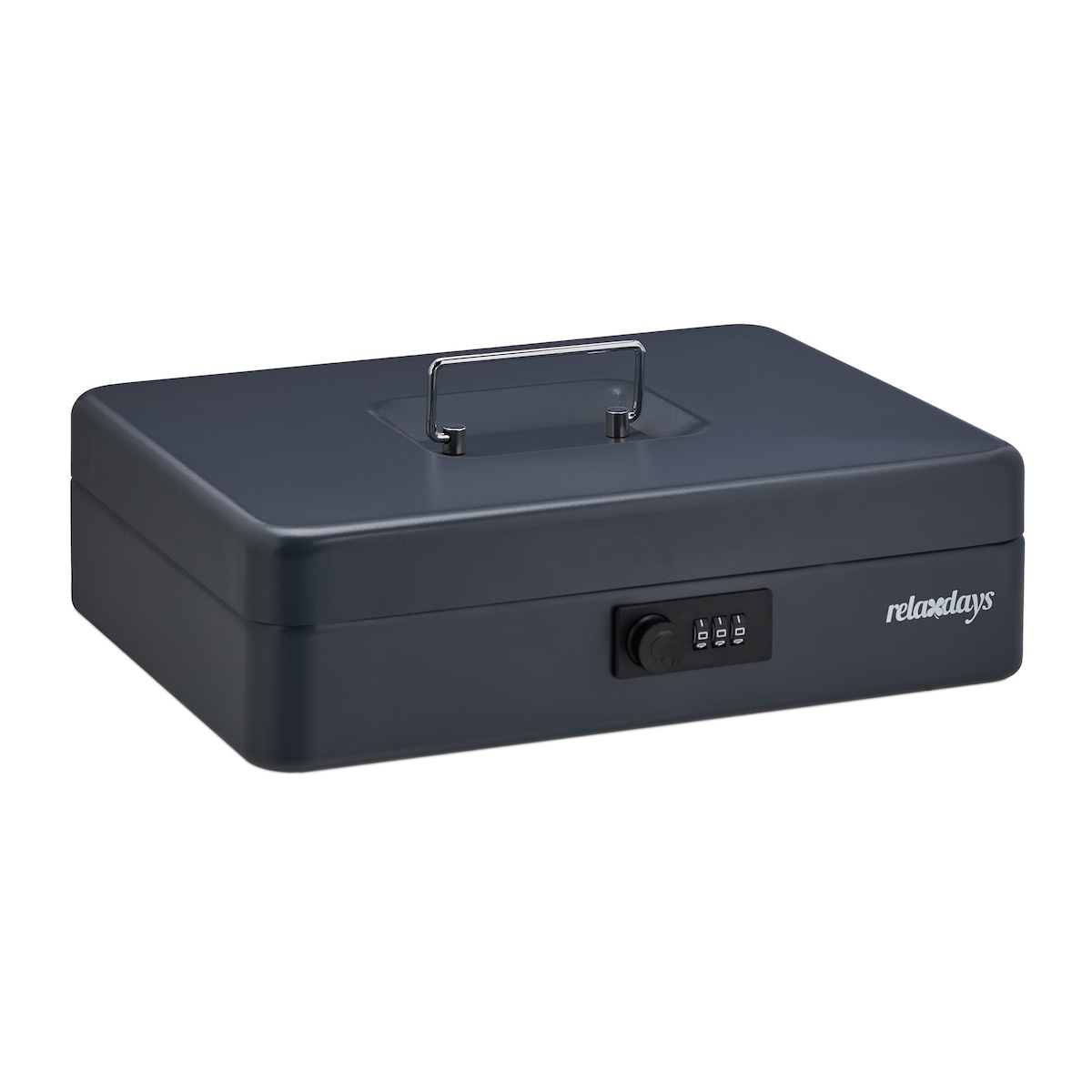 Relaxdays Geldkassette, 3-stellige Zahlenkombination, Stahl, Geldkasse für Münzen, Scheine, HBT 8,5 x 30,5 x 25 cm, grau