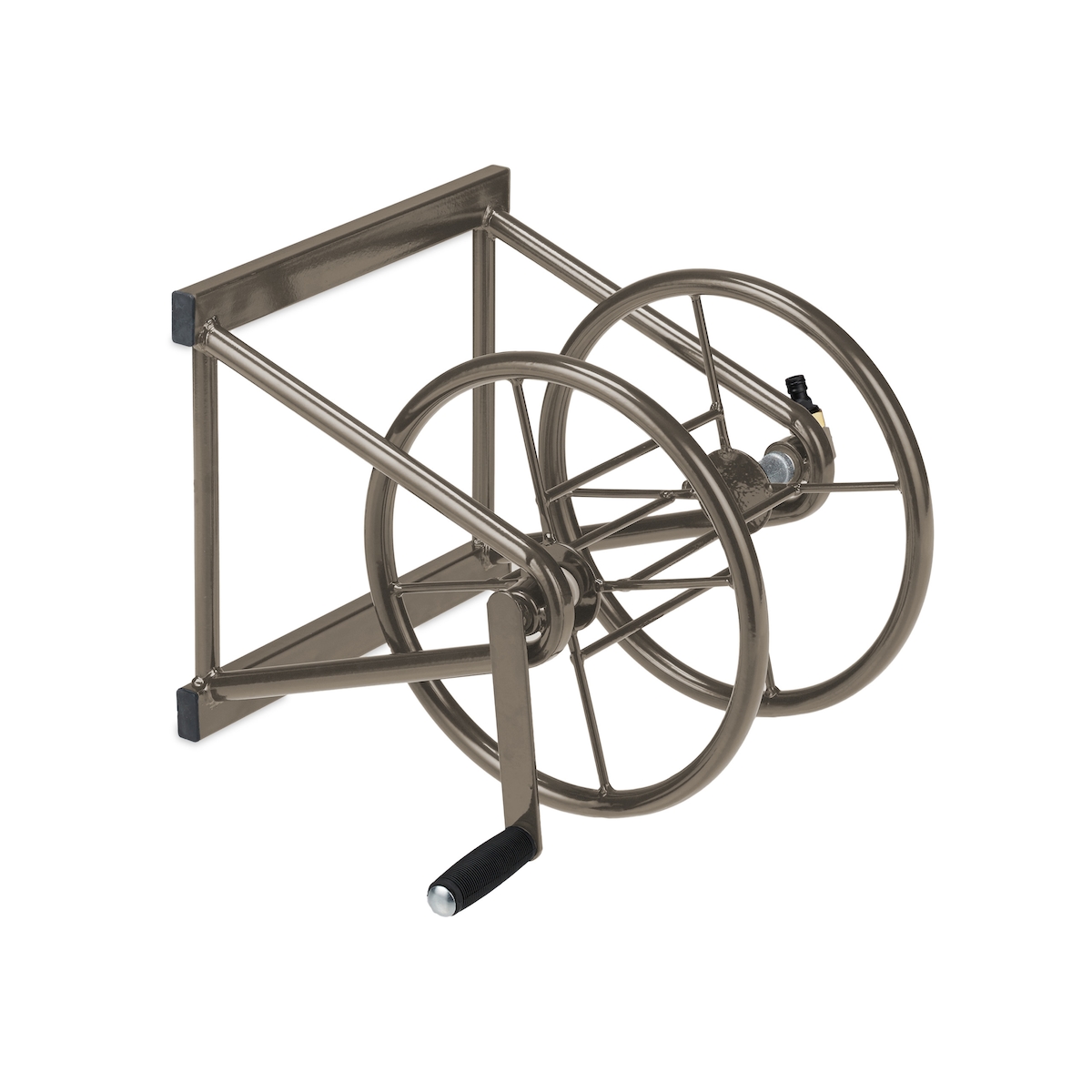 Relaxdays Schlauchtrommel, Stahl, für 60 m Schlauch, 2 Klickkupplungen, Wandschlauchhalter HBT: 36 x 55 x 50 cm, braun