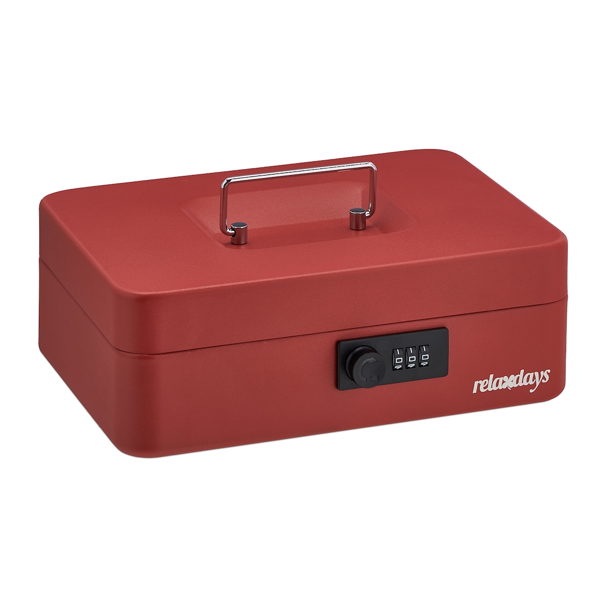 Relaxdays Geldkassette, 3-stellige Zahlenkombination, Stahl, Geldkasse für Münzen & Scheine, HBT: 8,5 x 25 x 19 cm, rot