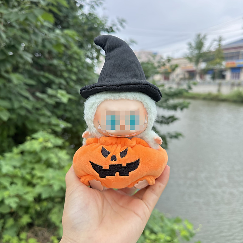 Kleidung für Labubu-Puppen – süßes Halloween-Outfit für 17 cm Kostümzubehör (keine Puppe) Modepuppen-Kleidungsset, abnehmbares Kawaii-Outfit mit Kürbis-Accessoires