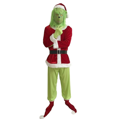 natale ladro capelli verdi maschera da mostro verde bambola di peluche copricapo carnevale party spogliatoio oggetti di scena maschera di bambola di peluche verde
