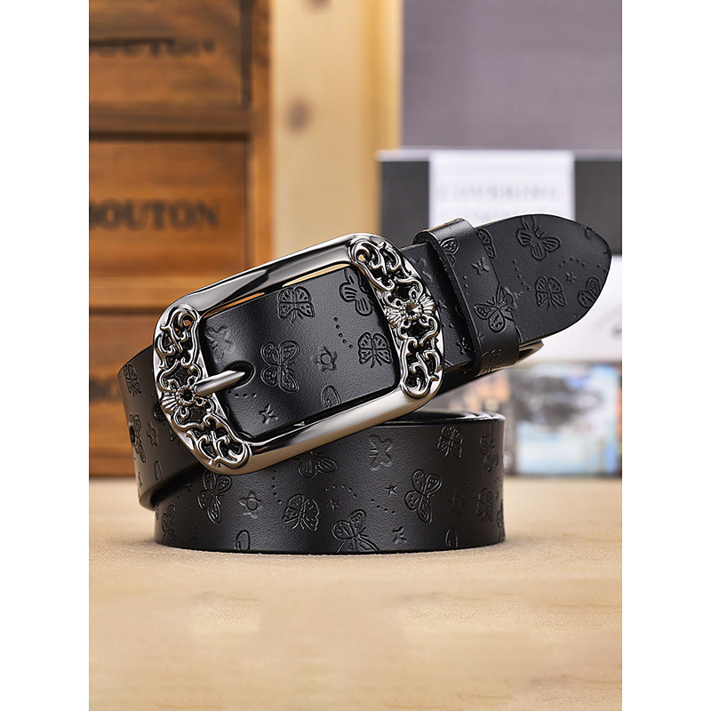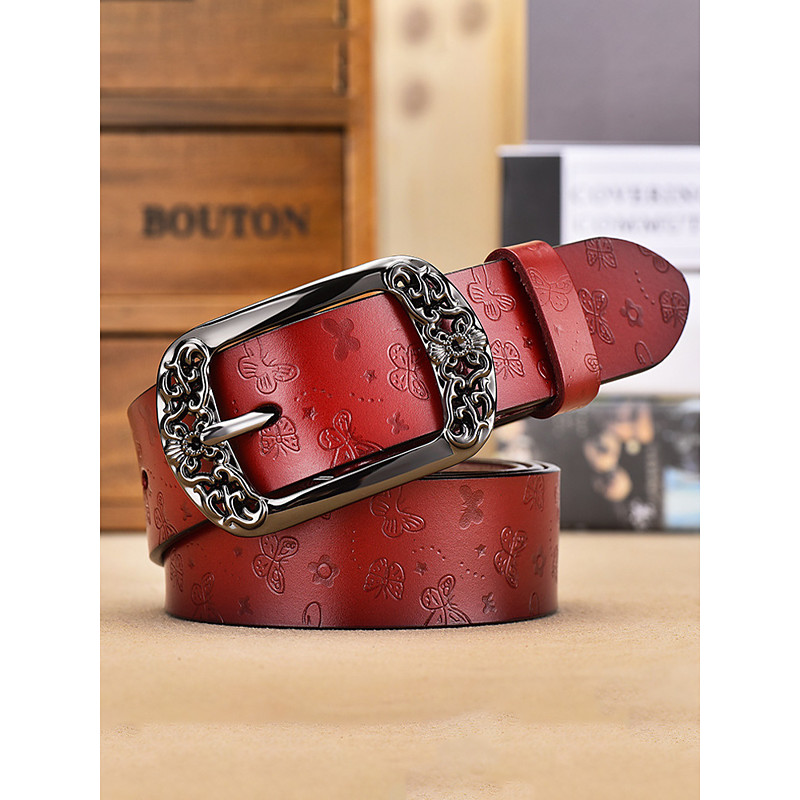 Women's Leather Belt with Floral Embossed Design, Available in Multiple Colors, Ideal for Bohemian Casual Wear