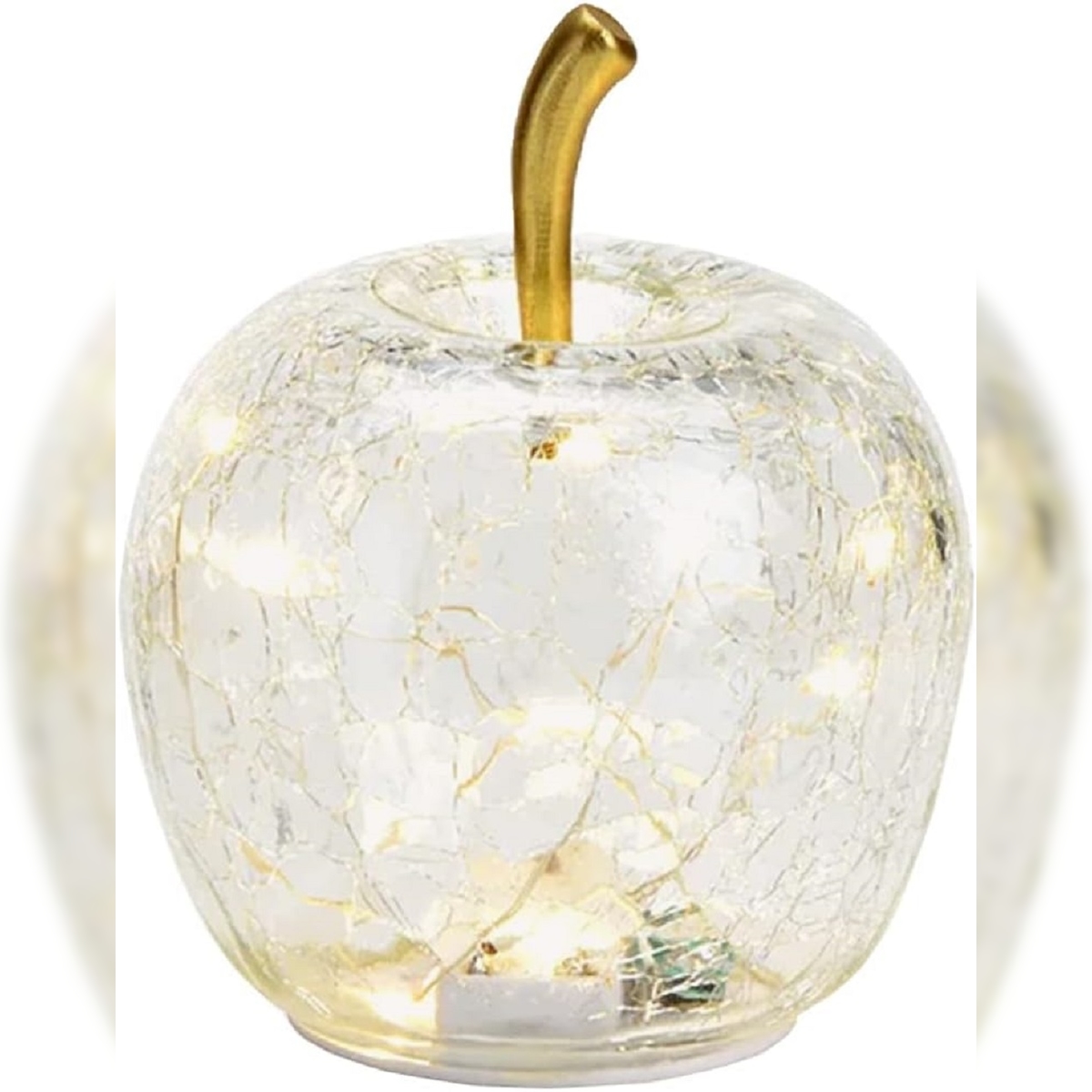 LED Dekolampe Apfel Glas 10er LED Lichterkette Timer Ø11cm transparent