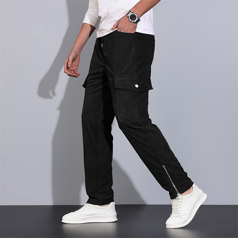 Men's Cargo Pants Corduroy Pants Trousers Elastic Waist Multi Pocket Zip Leg Plain Wearable Outdoor Daily Camping Hiking Fashion Classic Black Army Green