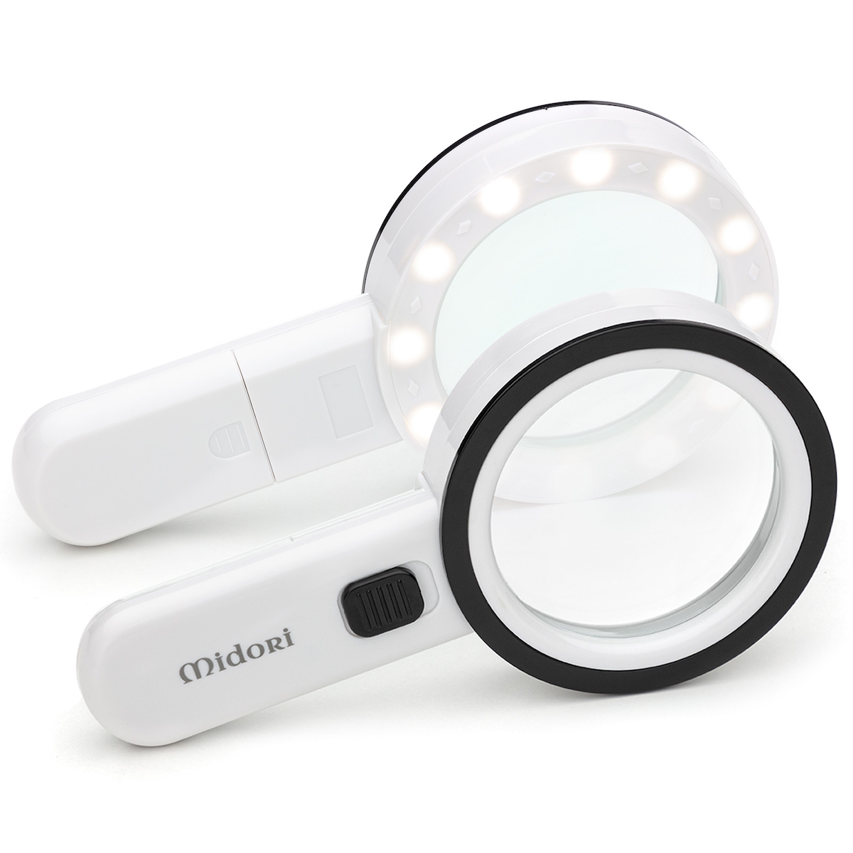 Midori® LED Lupe Leselupe 30-fache Vergrößerung Handlupe 80 mm Linse