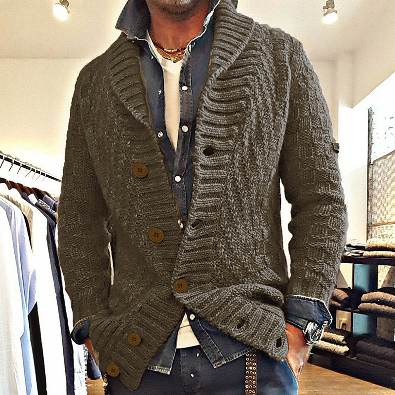 Men's Cardigan Sweater Knit Sweater Cable Knit Regular Button Up Side Pockets Solid Color Lapel Fashion Classic Daily Wear Date Clothing Apparel Fall Winter Black Blue S M L