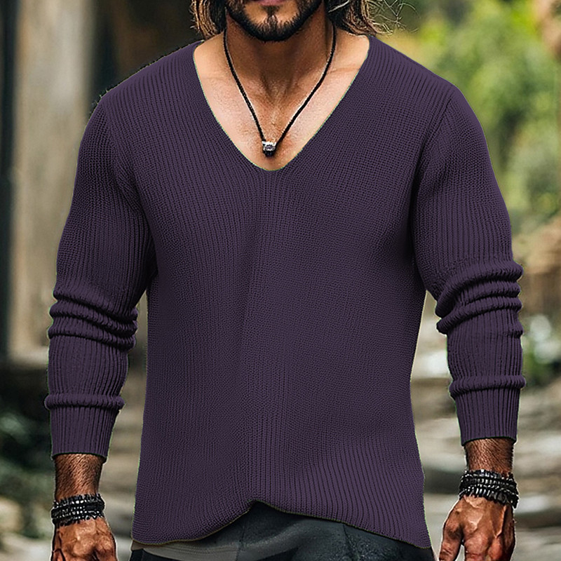 Men's Pullover Sweater Jumper Knit Sweater Ribbed Knit Regular Tops Knitted Plain V Neck Fashion Basic Vacation Daily Wear Clothing Apparel Fall Winter Black Blue S M L