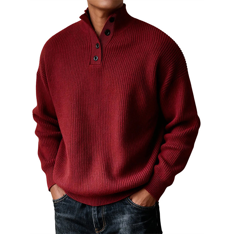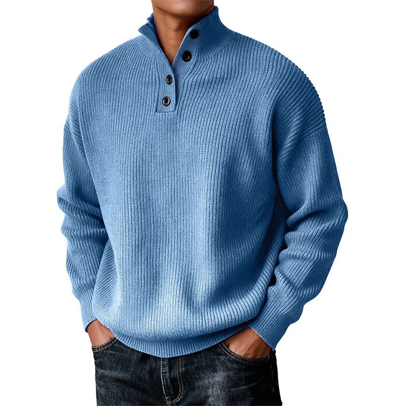 Men's Sweater Knit Sweater Knitted Pullover Ribbed Knit Regular Tops Buttons Knitted Plain Stand Collar Fashion Streetwear Casual Daily Wear Clothing Apparel Fall Winter Blue Black S M L