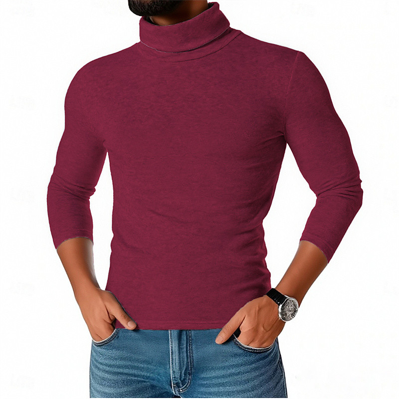 Men's Wool Sweater Knit Sweater Knitted Pullover Ribbed Knit Regular Tops Knitted Plain Mock Neck Fashion Streetwear Daily Wear Going out Clothing Apparel Fall Winter Blue Burgundy S M L