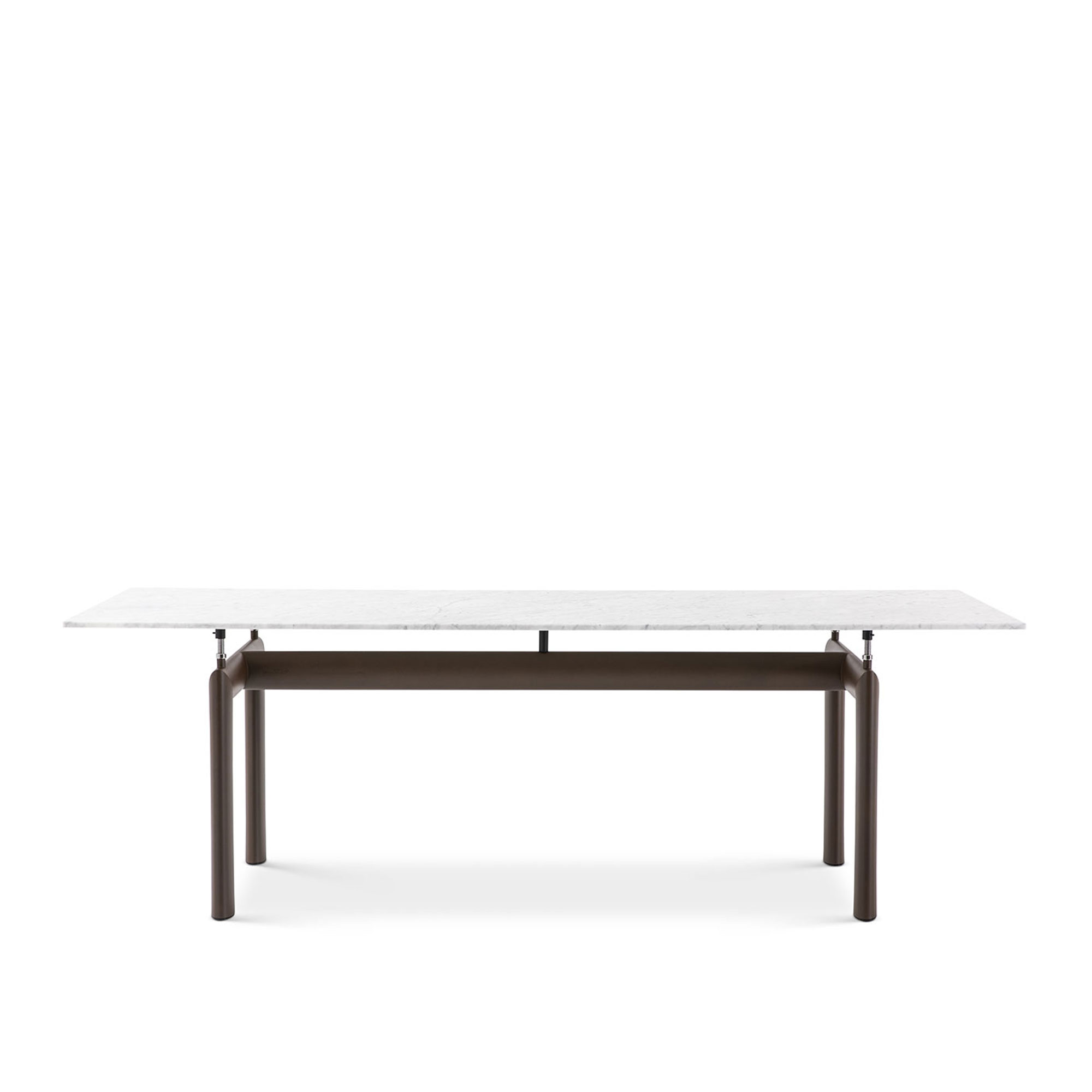 Cassina - LC6 bord Outdoor, Carrara Marble Top, Enamel Frame Textured Brown - Matbord utomhus - Brun - Metall/Sten