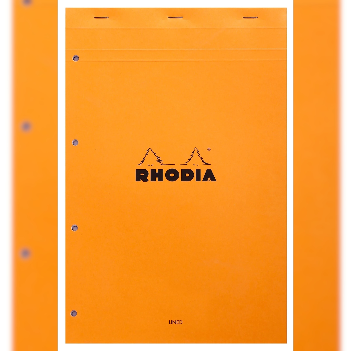 Rhodia 5x Gehefteter Notizblock Rhodia No.20 A4+, 80 Blatt liniert mit Rand 80g, 4-fach gelocht - Orange 119600C