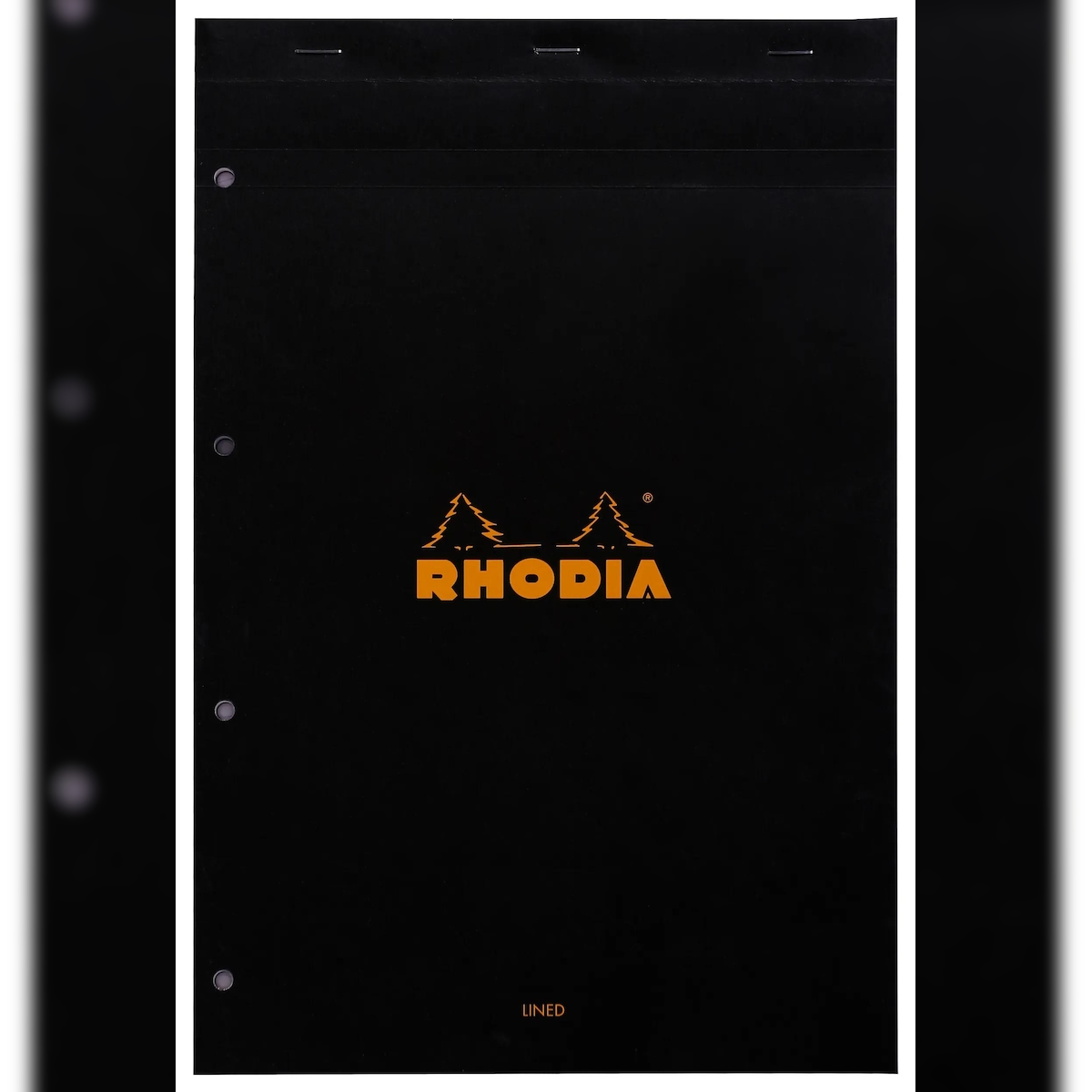 Rhodia 5x Gehefteter Notizblock Rhodia No.20 A4+, 80 Blatt liniert mit Rand 80g, 4-fach gelocht - Schwarz 206009C