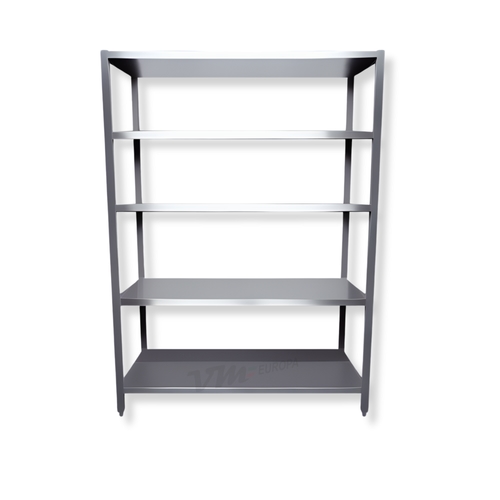 VM Europa Edelstahl Lagerregal - H=2200mm - 5 Böden - AISI 430 - koplett verscheißt - Tragfähigkeit 70 kg/m²: 160 x 60 cm / verschweißt / 5