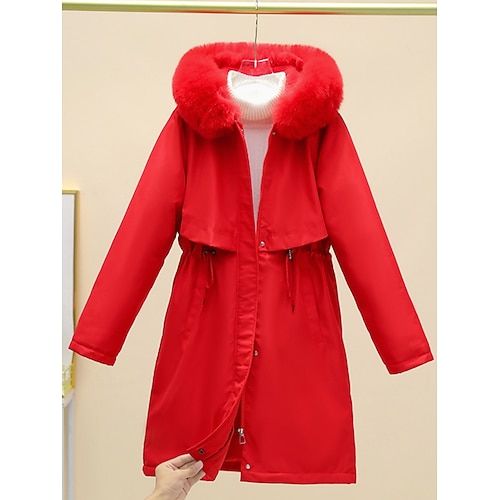 Damen Parka Bequem Atmungsaktiv Tasche Pelzkragen Lässig Einfach Urlaub Straße Lässig Alltagskleidung Reisverschluss Regulär Mit Kapuze Normale Passform Langarm Oberbekleidung Schwarz Rote Blau
