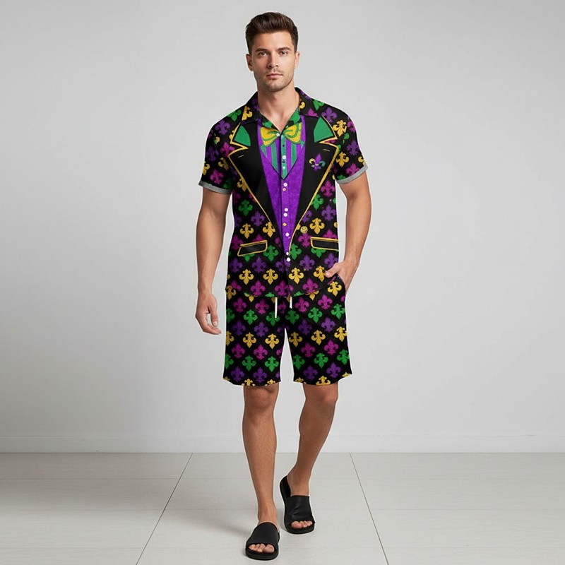 Mardi Gras 2026 Carnival Outfits Shorts Hawaiian Shirts Casual Adults' Men's Carnival Mardi Gras Rio Carnival Beach Party Easy Carnival Costume Dress Up