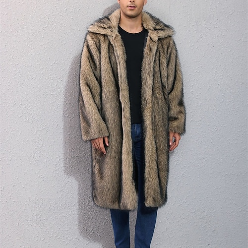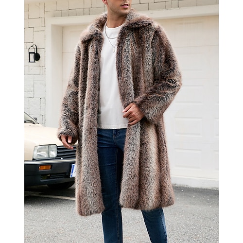 Per uomo Giacca Casual Cappotto in Pelliccia Sintetica Vacanza Quotidiano Calore Termico Felpato Autunno Inverno Semplice Moda Streetwear Bavero Lungo Marrone Giacca