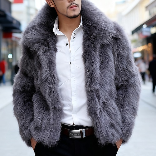 Per uomo Giacca Invernale Cappotto in Pelliccia Sintetica Vacanza Quotidiano Calore Termico Pile Inverno Semplice Moda Streetwear Bavero Regolare Grigio Giacca