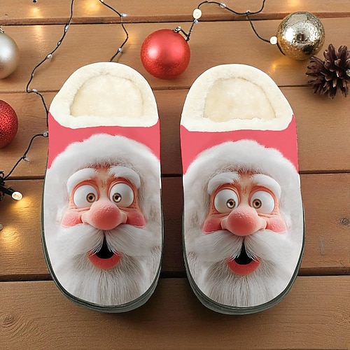 pantofole da uomo in pile con stampa di Babbo Natale, divertenti scarpe da interno con cartoni animati natalizi, calde pantofole da casa in peluche perfette per le vacanze invernali e come regalo