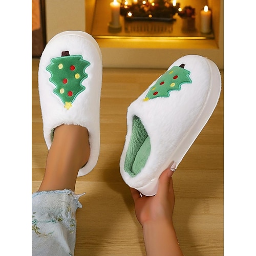 pantofole di peluche a forma di albero di Natale da donna: calde scarpe da interno in pile per l'inverno, le vacanze e il relax a casa