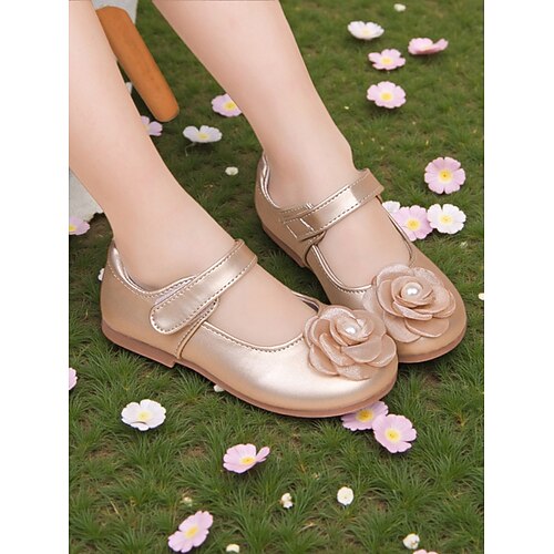 eleganti scarpe bianche Mary Jane per bambini con cinturino in pizzo floreale e dettagli in perle, tomaia in morbida pelle PU e comoda suola piatta, classico stile principessa per bambine, perfette