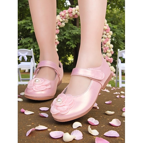 scarpe bianche da bambina modello Mary Jane con applicazione di fiori di perle, suola piatta morbida e comoda, elegante stile principessa per bambine, perfette per damigelle d'onore ai matrimoni,