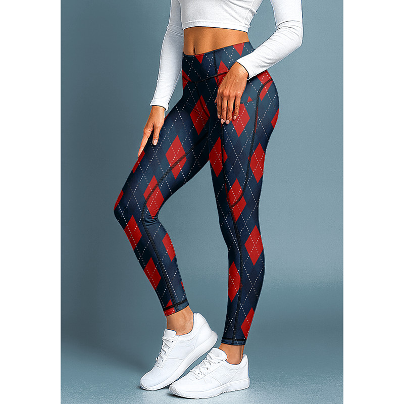 Women's pilates leggings fitness pants Gym Leggings Pockets Stamp Duty Side Pockets Pilates Gym Gym Workout Pants Tights Leggings Plaid Blue Sports Activewear Stretchy Tight Fit