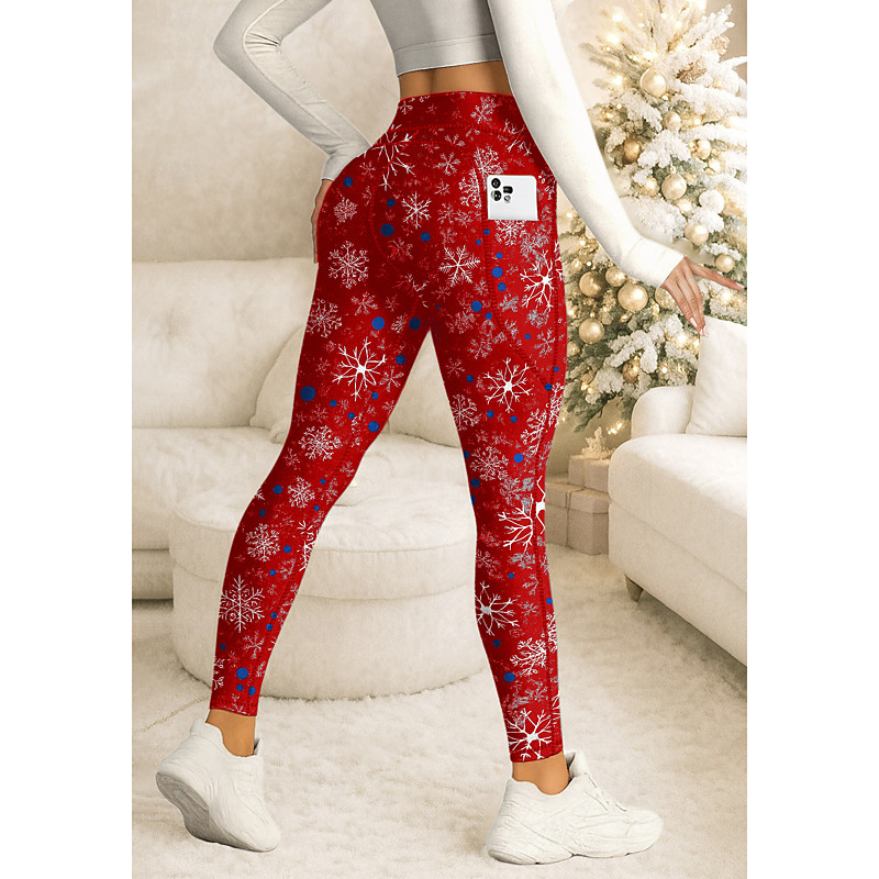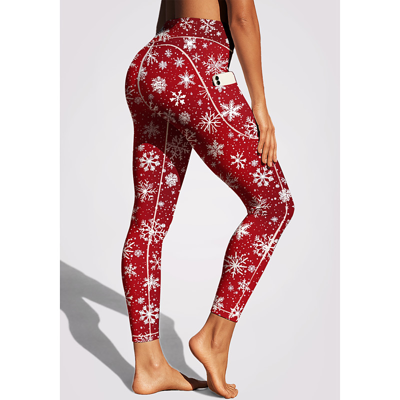 Women's pilates leggings fitness pants Gym Leggings Pockets Stamp Duty Side Pockets Pilates Gym Gym Workout Pants Tights Leggings Christmas Black Sports Activewear Stretchy Tight Fit