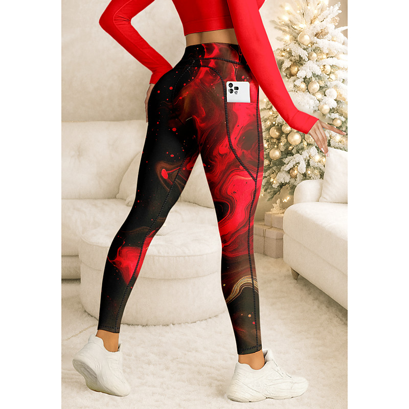 Women's pilates leggings fitness pants Gym Leggings Pockets Stamp Duty Side Pockets Pilates Gym Gym Workout Pants Tights Leggings Abstract Red Green Sports Activewear High Elasticity Tight Fit
