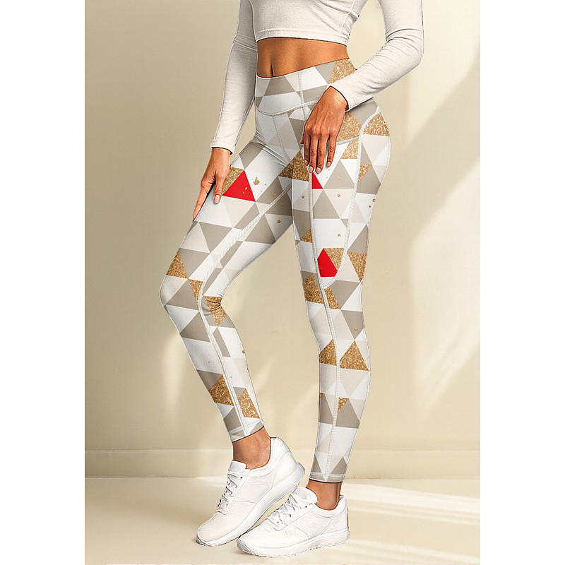 Women's pilates leggings fitness pants Gym Leggings Pockets Stamp Duty Side Pockets Pilates Gym Gym Workout Pants Tights Leggings Geometry Light Yellow Sports Activewear Stretchy Tight Fit