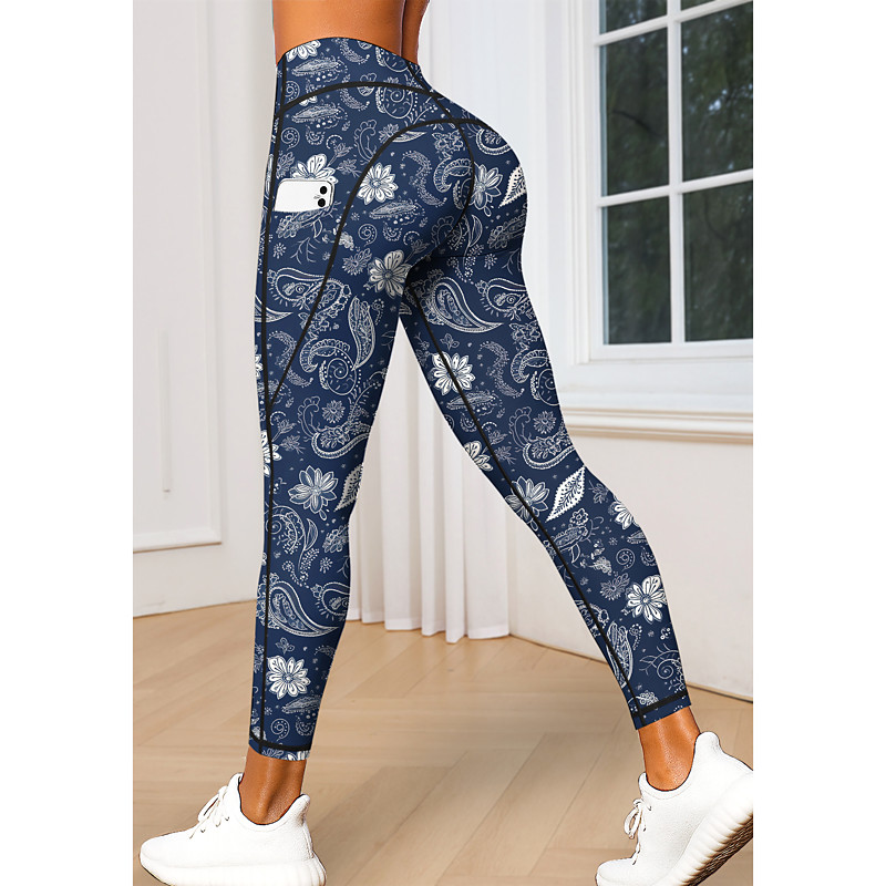 Women's pilates leggings fitness pants Gym Leggings Pockets Stamp Duty Side Pockets Pilates Gym Gym Workout Pants Tights Leggings Floral Pink Red Navy Blue Sports Activewear Stretchy Tight Fit