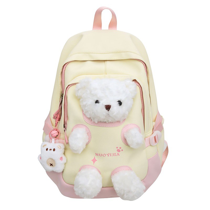 Girls' Yellow and Pink School Backpack with Plush Teddy Bear Design, Cute Lightweight Bookbag for Kindergarten and Elementary Students