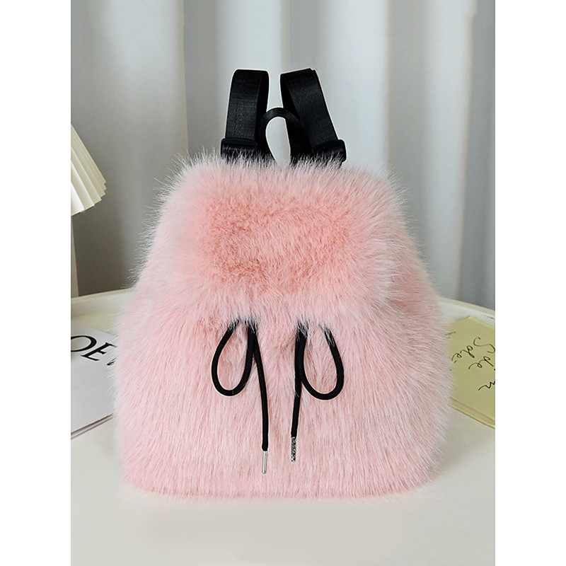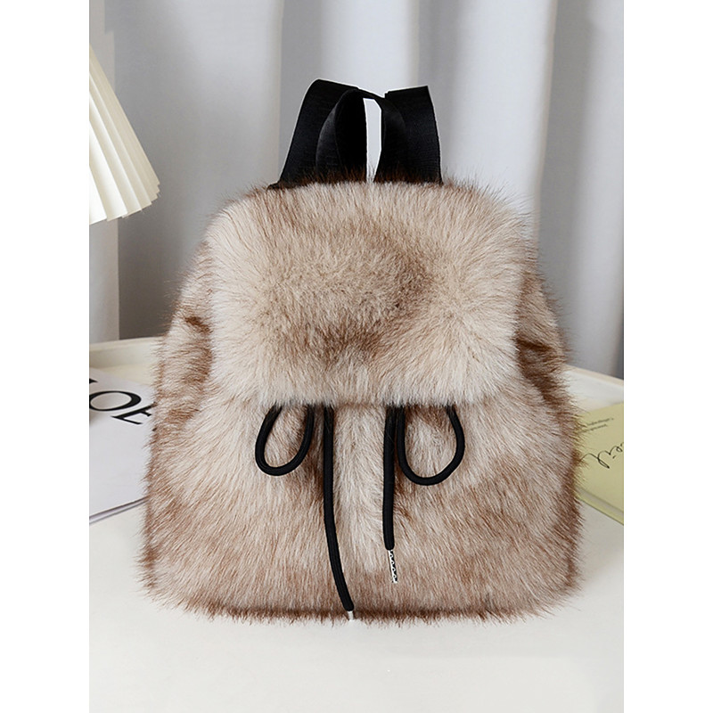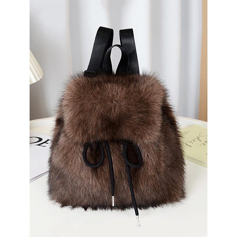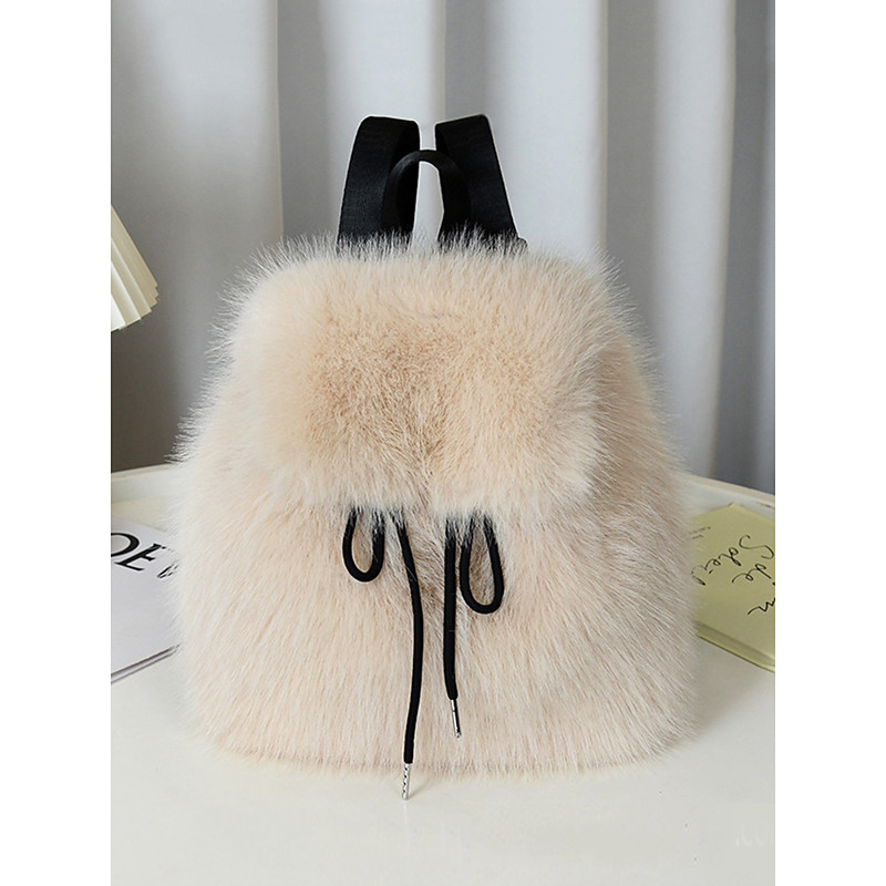 Women's Faux Fur Backpack, Stylish Drawstring Backpack for Casual Wear, Soft Plush Material, Perfect for Everyday Use and Winter Outfits