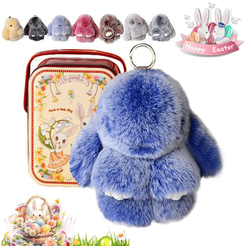 Easter Soft Bunny Keychain with Tin,Handmade Soft Bunny PomPom Charms Plush Keychain Rabbit Christmas Gift for Backpack,Bag Charm Gift Key Chain