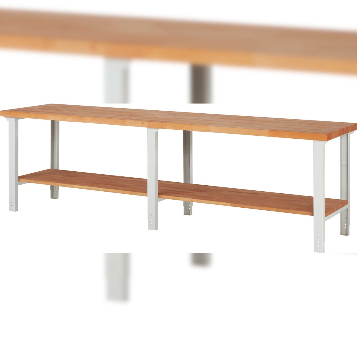 PROREGAL Werkbank Serie 7000 - Modell 7000 | HxBxT 79-114x300x70cm | mit Ablageboden | Lichtgrau | Arbeitstisch Werktisch