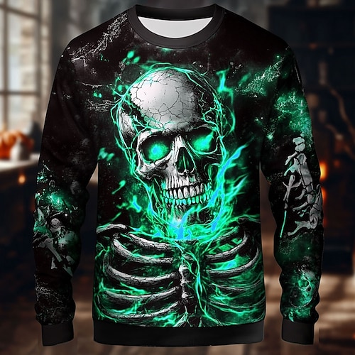 Felpa Uomo Teschio Raccoglitore Punk Festa Manica Lunga Collo A Cerchio Vacanza Rossa Blu Collo A Cerchio 3D Designer di Tutte le Stagioni