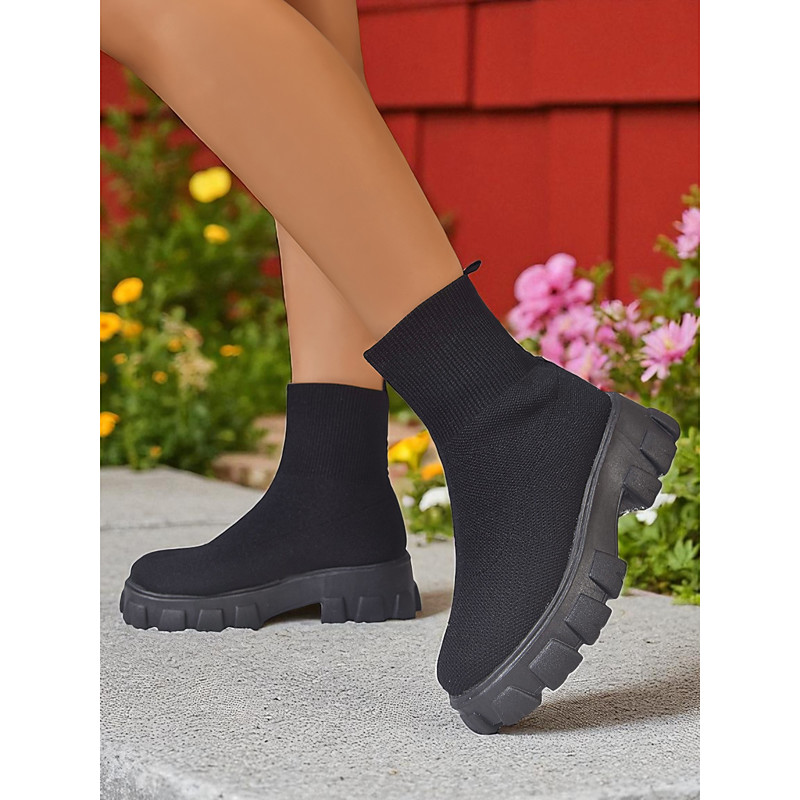 Women's Black Sock Boots with Chunky Red Soles – Stylish Stretch Knit Ankle Boots for Streetwear, Autumn Winter Outfits