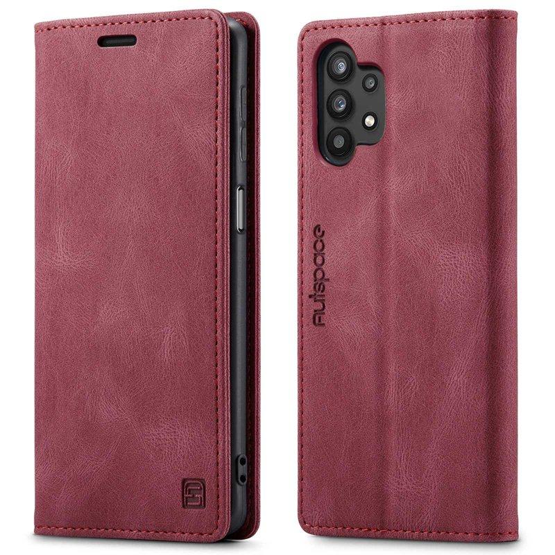 AUTSPACE A01 Plånboksfodral för Samsung Galaxy A32 5G - Konstläder - Röd
